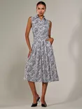 Sleeveless Polka Dot Shirt Dress, White/Black