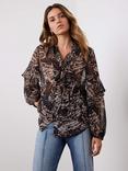 Mint Velvet Feather Print Ruffle Blouse, Brown/Multi