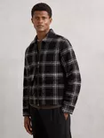Reiss Varena Zip Front Check Overshirt, Navy