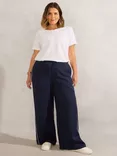Curve Petite Pinstripe Drawstring Trousers, Navy