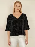 Stud Velvet Fluted Sleeve Top, Black