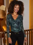 Sosandar Leopard Print Mesh Top, Green