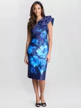 Gina Bacconi Venus Floral One Shoulder Dress, New Blue