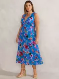 Live Unlimited Curve Blurred Floral Sleeveless Dress, Blue/Multi
