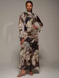 Monsoon Polly Floral Midi Dress, Burgundy