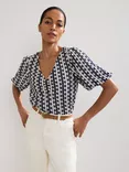 Phase Eight Alba Textured Stripe Top, Navy/Ivory