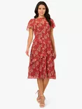 Adrianna Papell Floral Crinkle Chiffon Dress, Mocha/Multi