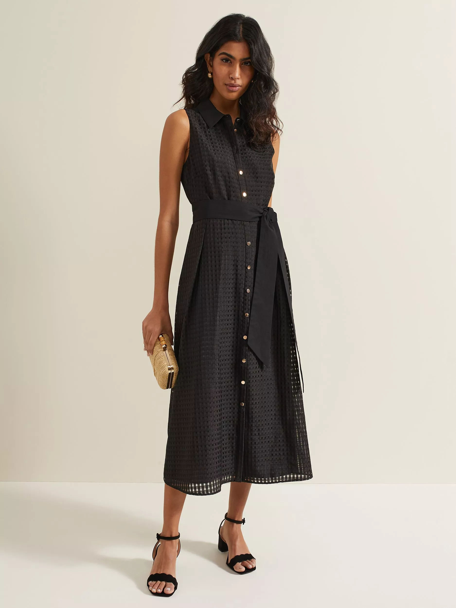 Jolie Moi Spot Chiffon Long Sleeve Dress, Black