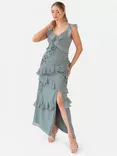 Maya Deluxe Embellished Ruffle Maxi Dress, Misty Green