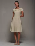 Jolie Moi Cap Sleeve Collar Dress, Beige, Beige