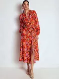 Boden Mae Floral Long Sleeve Round Neck Midi Shirt Dress