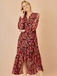 Yumi Rose Print Split Sleeve Midi Dress, Red