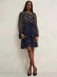 Hobbs Emmy Floral Long Puff Sleeve Round Neck Midi Dress