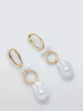 Open Link Faux Pearl Drop Earrings, Gold/White