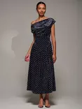 Jolie Moi Draped Cowl Velvet Dress, Black Polka Dot