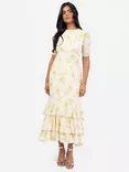Floral Ruffle Midaxi Dress, White/Chartreuse