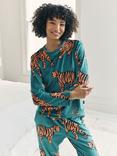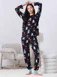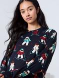 Chelsea Peers Skiing Dogs Long Pyjama Set, Navy