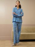 Brora Botanical Long Pyjama Set, Sky/Thyme