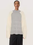 Soaked In Luxury Eliette Colour Block High Neck Wool Blend Jumper, Porpoise Melange