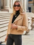 Sosandar Relaxed Fit Leather Biker Jacket, Black