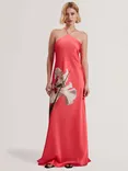 Ajima Flower Bias Cut Maxi Dress, Coral