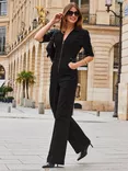 Sosandar Stretch Denim Zip Front Jumpsuit, Black