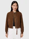 Reiss Sonny Boxy Pure Suede Jacket, Burgundy