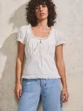 Ro&Zo Plain Empire Seam Lace Trim Top, White
