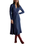 Jigsaw Long Sleeved Feather Print Midi Dress, Blue/Multi