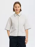 Short Sleeve Stitch Detail Cotton Shirt, Bright White