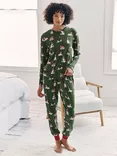 Chelsea Peers Christmas Dogs Long Pyjama Set, Khaki, Khaki