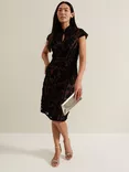 Edith Tapework Midi Dress, Black/Brown