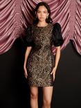Sister Jane Cherie Jacquard Leopard Print Mini Dress, Brown Multi