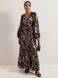 Petite Ellio Metallic Leaf Silk Blend Maxi Dress, Multi