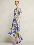 Ann Silk Floral Print Petite Midi Dress, Blue/Yellow