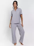 Loungeable Ribbed Traditional Long Pyjama Set, Silver