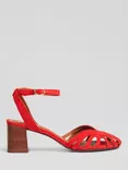 Aspen Suede Plaited Front Block Heel Sandals, Aurora Red