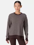 Sweaty Betty After Class Stripe Cropped Longline Sweatshirt, Lilywhite Garnet