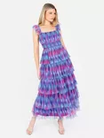 Cape Cove Stripe Scallop Detail Tiered Dress, Blue/White