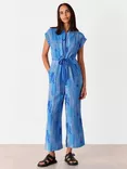 Stripe Print Zip Jumpsuit, Blue/Multi