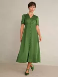 Hobbs Petite Bonnie Leaf Print Midi Dress, Ivory/Multi