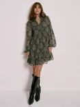 Abstract Shirred Collar Mini Dress, Green Khaki
