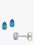 E.W Adams 9ct Gold Teardrop Stone Stud Earrings, Blue Topaz