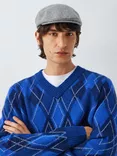 Wool Herringbone Check Bakerboy Cap, Grey Mid