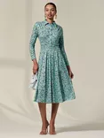 Abstract Button Up Midi Dress, Teal/Multi