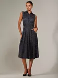 Sleeveless Polka Dot Shirt Dress, White/Black