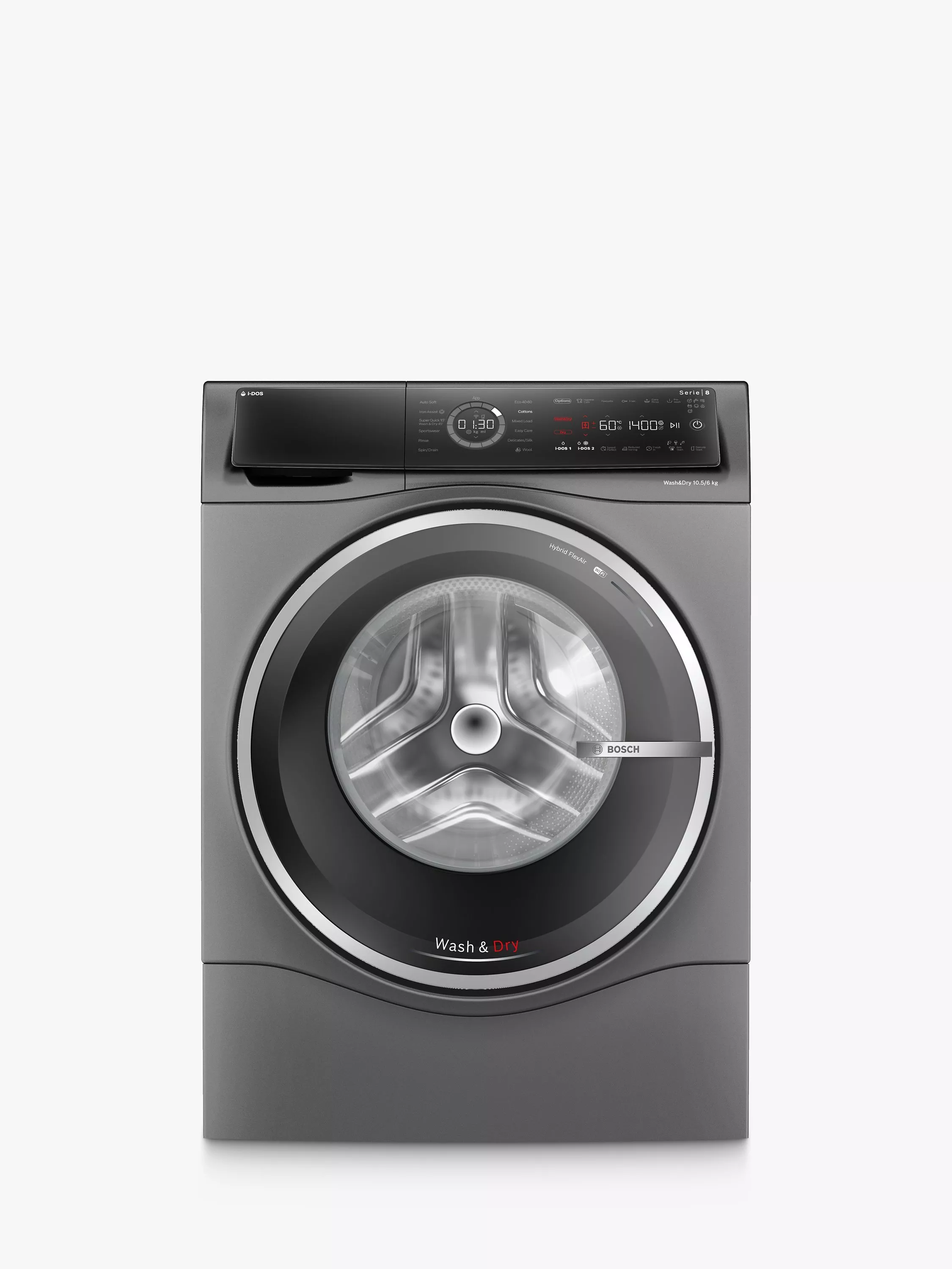 Bosch Series 6 Freestanding Washer Dryer, 10.5kg/6kg Load, 1400rpm Spin, WNG25401GB, WNG254R1GB