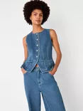 Cotton Slim Fit Sleeveless Waistcoat, Denim