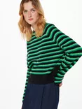 Whistles Wool Blend Stripe Crew Neck Jumper, Green/Multi