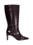 Dune London Olette Leather Reptile Effect Pointed Toe Calf Boots, Burgundy